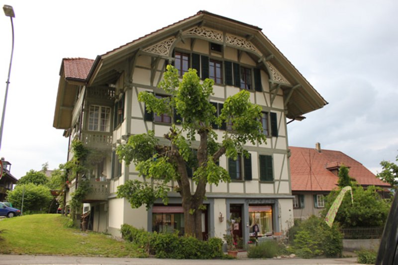 Very centrally located. 2 minutes walk from Uetendorf train station, shopping facilities (Migros/Coop etc.), right next door is a bakery/pastry shop.