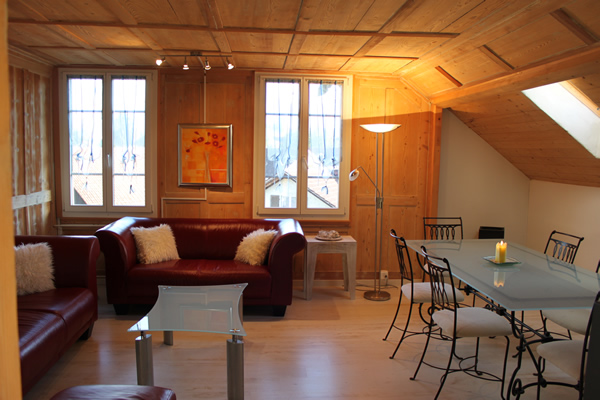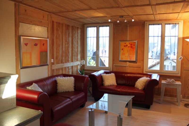 Lovingly furnished 5-room attic apartment with cachet, in a renovated house (over 100 years old) with mountain view. 2 covered balconies with beautiful view towards east and west.